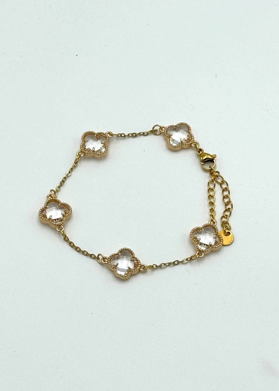 PULSERA TIPO VAN CLEEF - DORADOB TRÉBOL CRISTAL BLANCO